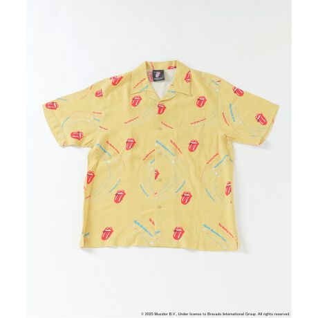 世界中のファンから愛されているロックバンド、ローリングストーンズのシンボルマーク、「リップ&タン」を大胆にあしらった総柄レーヨンシャツが登場。