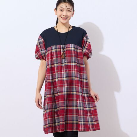 【洗える】マドラスチェック パフスリーブワンピース