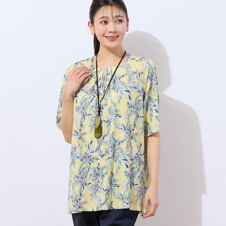 【洗える・日本製】トロピカルリーフ柄カットソー