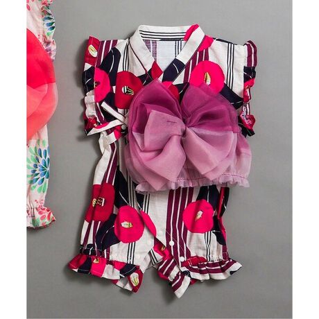 大きな総柄に、フリルデザインが目を惹くベビー甚平♪