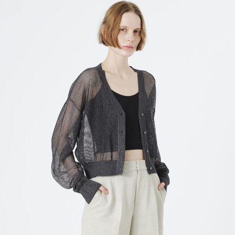 見た目も涼し気で、程よい透け感がスタイリングにアクセントを加えてくれるメッシュニットカーディガン
