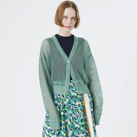 見た目も涼し気で、程よい透け感がスタイリングにアクセントを加えてくれるメッシュニットカーディガン