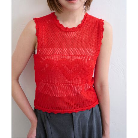 ハートメッシュニットトップス