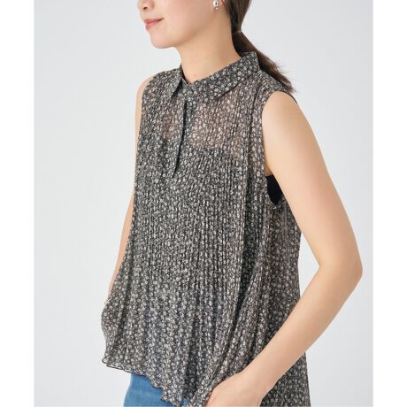モノトーンの小花柄が大人可愛いノースリーブブラウス。
