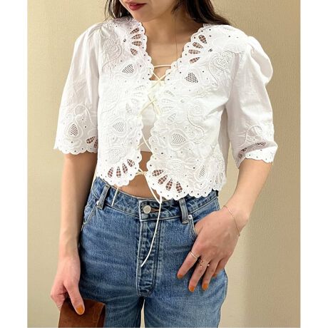 カットワークレースが目を引くデザインブラウス。