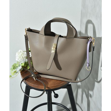 上品な光沢感があるフェイクレザーを使用し、ゴールドの金具が上品なアクセントに◎内側の釦で2WAYの使い方ができ、またさりげない配色のキーリングもポイントです。高級感ある見た目と使いやすいサイズ感で、毎日使うBAGには嬉しいお勧めなバックです。スタイリングを邪魔しないシンプルなデザインも魅力の1つ。きちんとした着こなしにも良く合うので通勤やセレモニーまで活躍します。肩掛けもできるショルダー付きです。