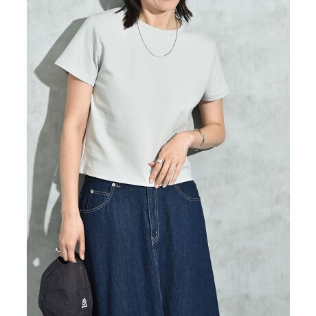 透け感が少なくしっかりとした素材感が魅力で、楽に着られる程よいサイジングのTシャツ。コンパクトな着丈がスタイリングのアクセントなり旬なスタイルに◎ボトムスにインしなくてもバランスよく着回しができ、いつものコーディネートにプラスしやすい1枚です。