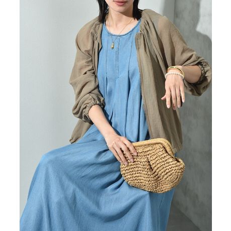 着るだけで旬なスタイルが決まるシアーブルゾン。シャツ感覚で着まわせ、柔らかい素材を使用しているのでごわつかず女性らしく着ていただけます。ボディは程よいリラックスサイズにし、腕周りに余裕を持たせました。また襟周りのギャザーで女性らしい立体感あるシルエットも◎表面のナチュラルなシボ感が大人な雰囲気をプラスしてくれ、ゆったりとしたサイズ感ながら、綺麗目な印象に◎