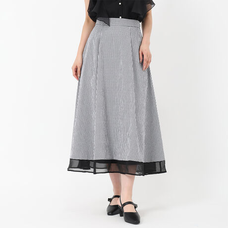 ガーリーな風合い漂うギンガムチェック柄のスカート。裾はシアー切り替えを施しており、さりげない抜け感を演出します。バックのウエストゴム仕様がラクな着心地を実現。ブラウスと合わせたレディライクな着こなしがおすすめです。■fabric透け感[無し]裏地[無し]伸縮性[やや有り]生地の厚さ[薄手]