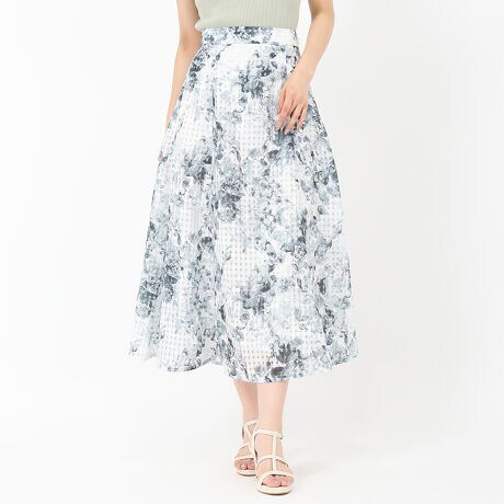2025春夏新作 スクエアレース水彩フラワースカート