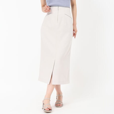 配色パイピングがさりげない表情感を演出するスカート。すとんとしたタイトシルエットで、美しい縦長効果をもたらします。さりげない抜け感を与えるスリットがポイント。トップスをタックインしたメリハリのある着こなしがおすすめです。■fabric透け感[無し]裏地[無し]伸縮性[やや有り]生地の厚さ[普通]