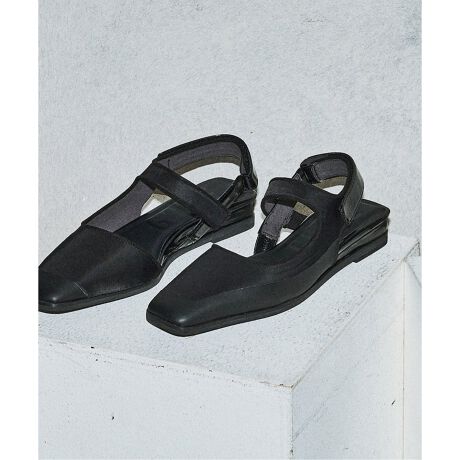 すっきとしたスクエアトウとアシンメトリーなカッティングでカジュアルさを抑え、足元をきれいに見せてくれます。