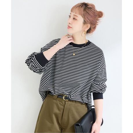 ドロップショルダーのルーズなスペックのゆったりシルエットでラフな雰囲気のTシャツです。ベーシックな色味ながら首元や袖口リブがアクセントになるメリハリのあるデザインにしています。