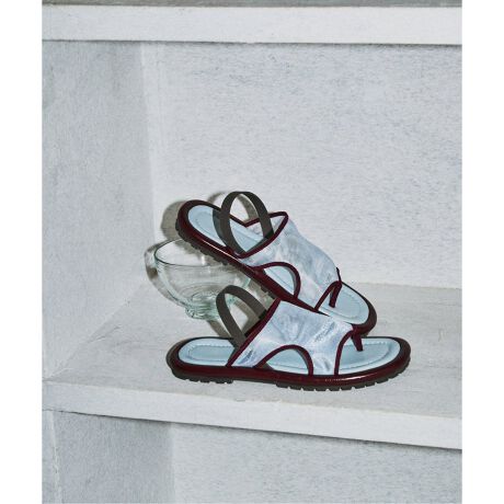 シアーなアッパーに細いトリミングでニュアンスを出したトングサンダル。