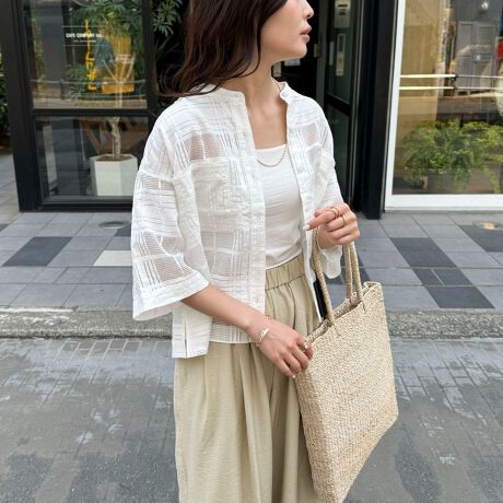 ・中にタンクトップやキャミソールを合わせたヘルシーな着こなしやボタンを開けて羽織として着用するのもオススメです