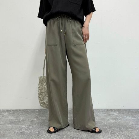 ・柔らかな履き心地が魅力的なシルキーリネンブレンド素材のパンツです
