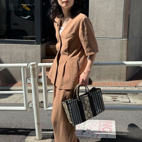 《セットアップ対応》レーヨン麻半袖ジャケット