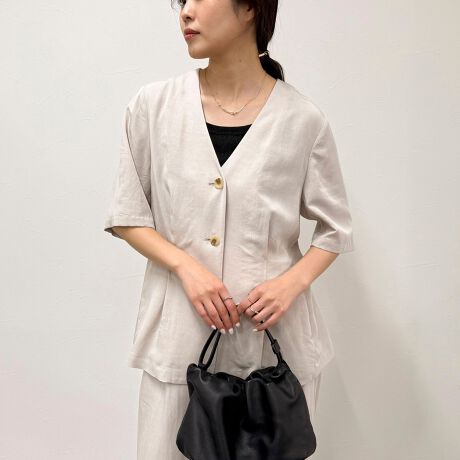 ・ノーカラーでかっちりし過ぎず、カジュアル合わせもしやすいデザインです