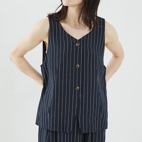 【セットアップ対応】レーヨンリネンストライプベスト
