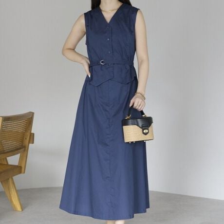 ジレにスカートを着ているようなセットアップ見えするレイヤードワンピースをリリースしました。