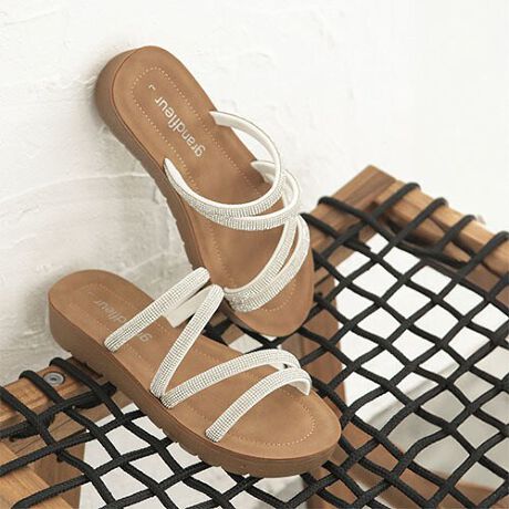 らせん状の線にラインスストーンが散りばめられたフラットサンダル。
