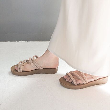 らせん状の線にラインスストーンが散りばめられたフラットサンダル。