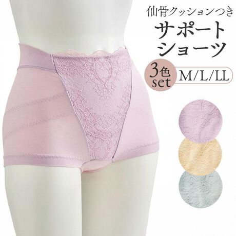 【商品名】 仙骨シート付きヒップ&サポートショーツ3色組