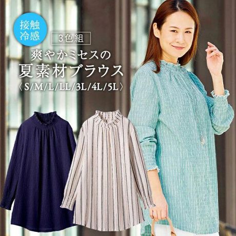 接触冷感 爽やかミセスの夏素材ブラウス3色組