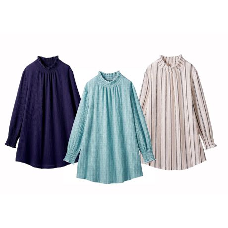 接触冷感 爽やかミセスの夏素材ブラウス3色組
