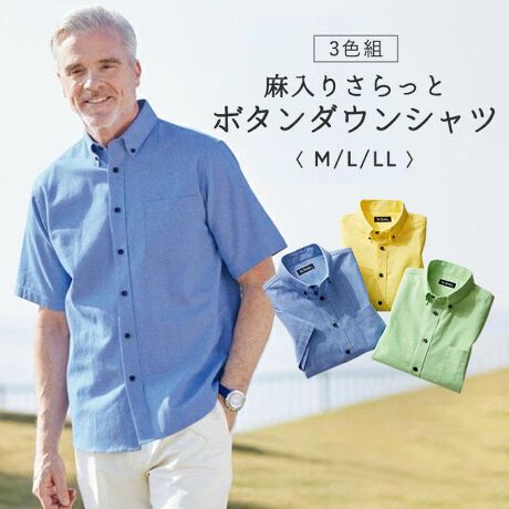 麻入りさらっとボタンダウンシャツ3色組