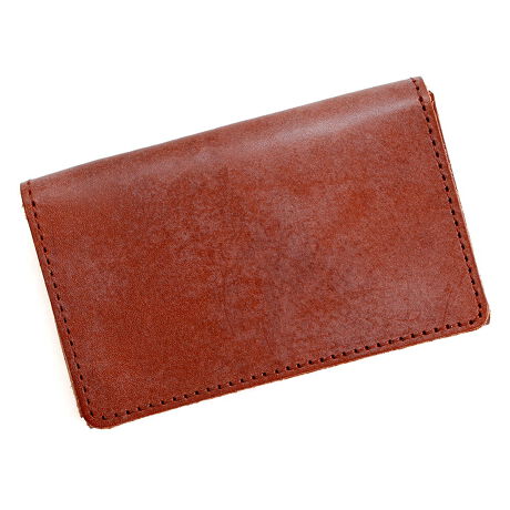 牛革だけで仕立てたシンプルデザインの名刺入れです。サイドが蛇腹構造になっているので、収納する枚数に合わせてマチが広がります。メインの収納ポケットには、60枚程度の名刺がまとめて収納できます。本体前側とフラップの裏側にはマチ無しのポケットがあり、いただいた名刺の一時保管に便利です。 使い込むほどに艶が増す、「育てる革」を使用しているので、エイジングを愉しむことができます。