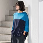 大胆なカラーブロッキングで、一枚で印象的な着こなしに。