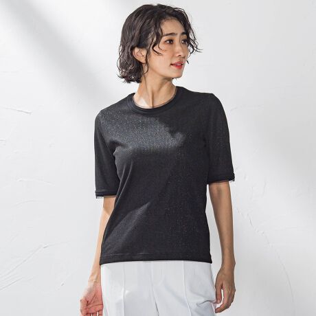 華やかな印象のラメ素材をシンプルなTシャツに仕立てた、