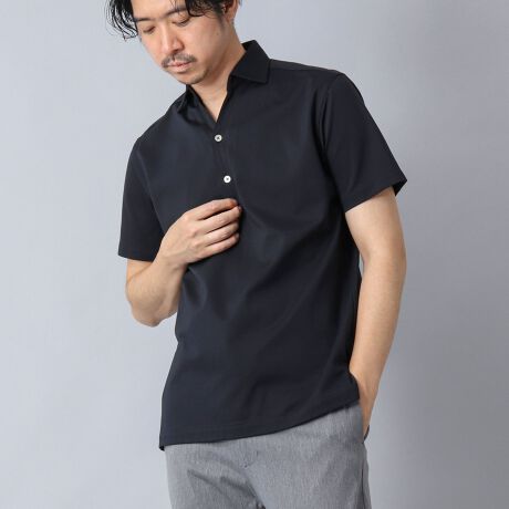 絶妙な深さの切れ込みを入れたスキッパーポロ仕様。首周りをスッキリと見せてくれるほか、上品でエレガントな雰囲気もプラス。