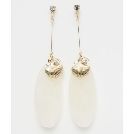 [型番:4KXZ5616-2025]ナチュラルカラーのチャームとシェルモチーフのピアス。きらりと光るラインストーンがポイントです。