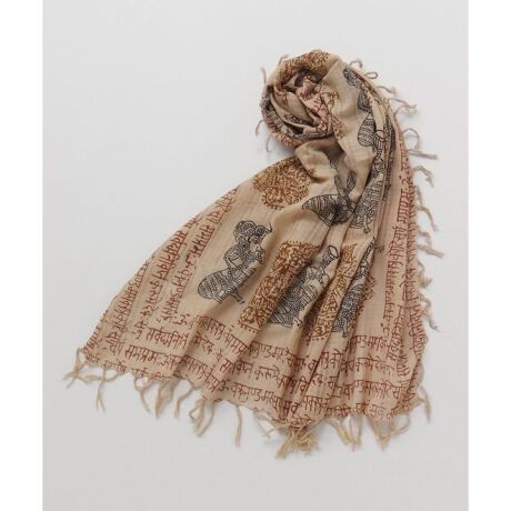 [型番:IRAP5104-2025]サラッとしたインド綿を使用した手触りのよい、正方形スカーフ。 ヒンドゥー教の神様クリシュナと女性がプリントされた、エスニック感溢れる一枚。