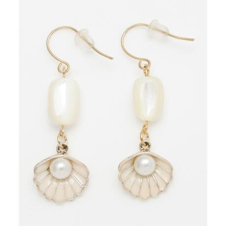 [型番:4KXZ5608-2025]シェルビーズと貝殻モチーフのピアス。貝殻の中のパールがポイントです。