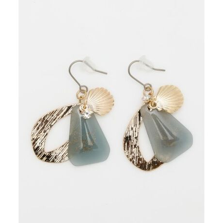 [型番:4KXZ5613-2025]落ち着いた色合いのシェルモチーフのピアス。揺れると光るラインストーンがポイントです。
