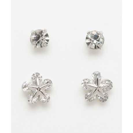 [型番:4KXZ5656-2025]ハワイのお花とラインストーンのセットピアス。シンプルなデザインなのでコーディネートを選びません。きらりと光るラインストーンがポイントです。