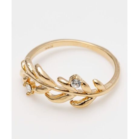 [型番:4KXZ5624-2025]リーフモチーフのリング。ハワイの自然をイメージしたデザインです。2つのラインストーンがポイント。