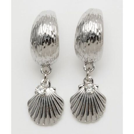 [型番:4KXZ5666-2025]ゴールドとシルバーのシェルのピアス。さりげなく光るラインストーンがポイントです。