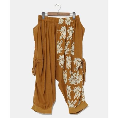 肌触り・はき心地ともに抜群な変形メンズサルエルパンツ。サイドストリングを絞るとシルエットの変化が楽しめます。無地と柄のバランスが絶妙で、セットアップでの着用もおすすめ。