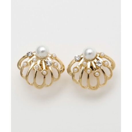 [型番:4KXZ5659-2025]小ぶりで可愛らしいシェルのピアス。パールとラインストーンが散りばめられ、華やかな印象に。
