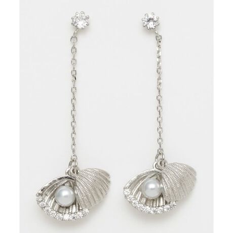 [型番:4KXZ5611-2025]ラインストーンとシェルのピアス。シェルは、揺れると貝殻も動き、パールが見え隠れするかわいいデザインです。