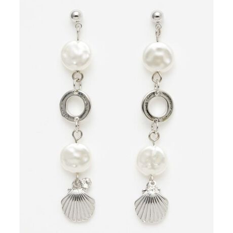 [型番:4KXZ5614-2025]シェルビーズとシェルモチーフのピアス。可愛らしく柔らかなイメージです。シェルモチーフで光るラインストーンがポイント。