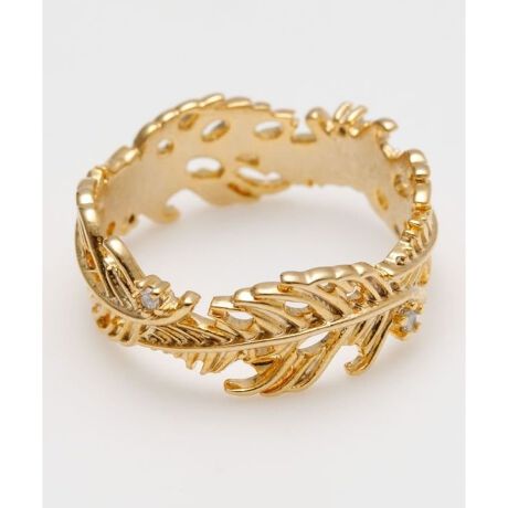 [型番:4KXZ5646-2025]リーフモチーフのリング。きらりと光るさり気ないラインストーンがポイントです。