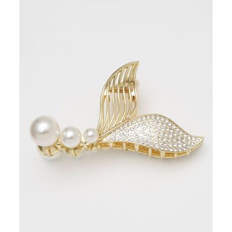 [型番:4KXZ5639-2025]マーメイドをイメージしたヘアクリップ。パールとラインストーンが輝きます。大ぶりなのでまとめ髪にもおすすめです。