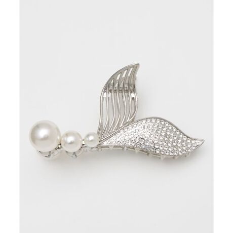 [型番:4KXZ5639-2025]マーメイドをイメージしたヘアクリップ。パールとラインストーンが輝きます。大ぶりなのでまとめ髪にもおすすめです。