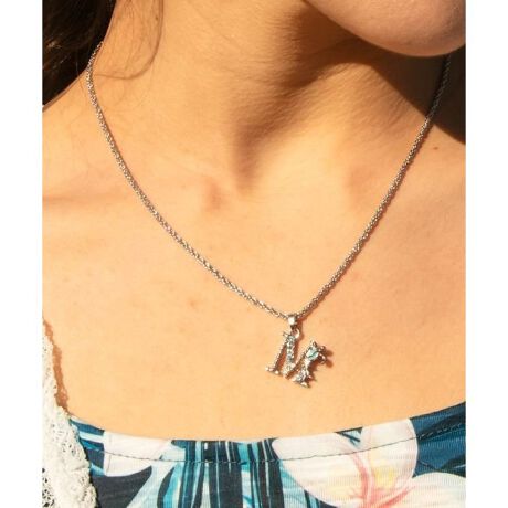 [型番:46PZ5201-2025]ラインストーンが輝くイニシャルネックレス。海の守り神と伝わるホヌがデザインされています。大切なあの人へのプレゼントにもおすすめ