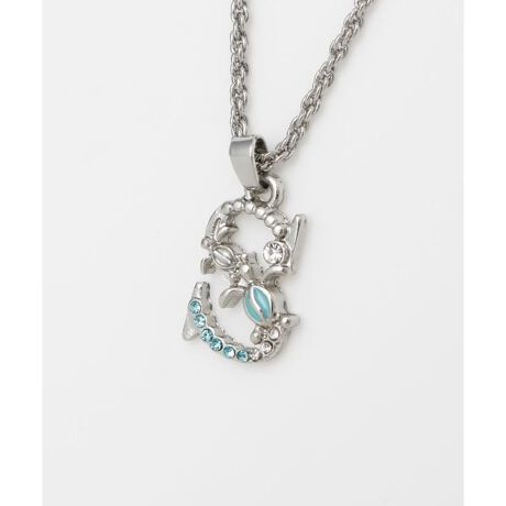 [型番:46PZ5201-2025]ラインストーンが輝くイニシャルネックレス。海の守り神と伝わるホヌがデザインされています。大切なあの人へのプレゼントにもおすすめ